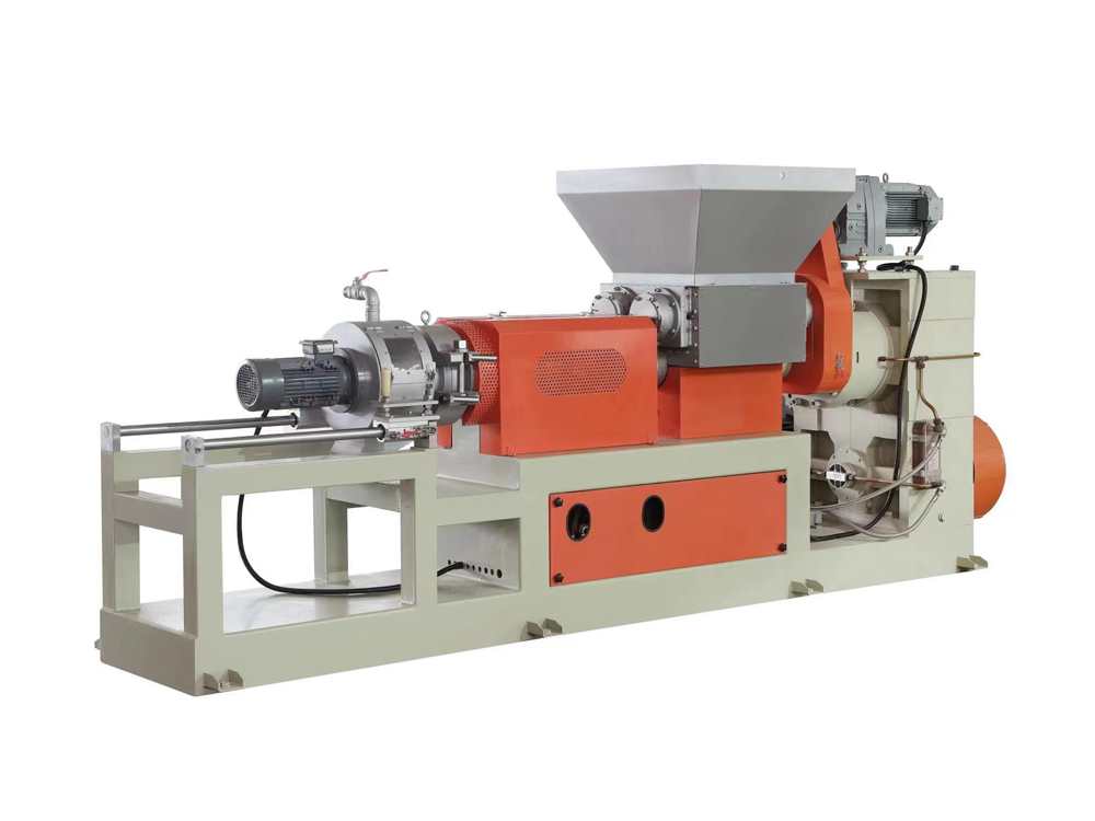 此機(jī)臺(tái)用于PVC,EVA,TPR等塑膠原料的生產(chǎn),包括主機(jī),雙腕入料,模頭切粒等系統(tǒng)將密煉機(jī)攪拌好的原料經(jīng)雙腕擠入造粒機(jī)內(nèi)經(jīng)螺桿擠出后切成粒子,此機(jī)臺(tái)操作簡單